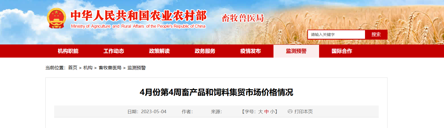 據(jù)對(duì)全國500個(gè)縣集貿(mào)市場和采集點(diǎn)的監(jiān)測,4月份第4周(采集日為4月26日)生豬產(chǎn)品價(jià)格上漲,雞蛋、雞肉商品代肉雛雞、牛肉、生鮮乳、豆粕、育肥豬配合飼料、肉雞配合...